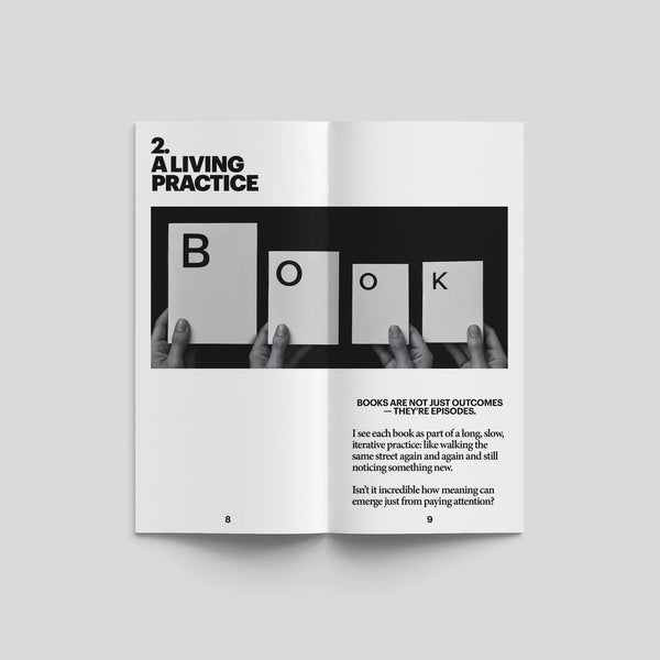 This pocket-sized zine gathers notes from years of personal practice and ongoing curiosity about what art can be in book form.